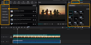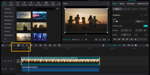 Drag them into the bottom timeline. Have all your files in one place so you won’t get confused. This is helpful when applying auto edits or such features as the AI video generator, which creates fantastic scenes using clips.
